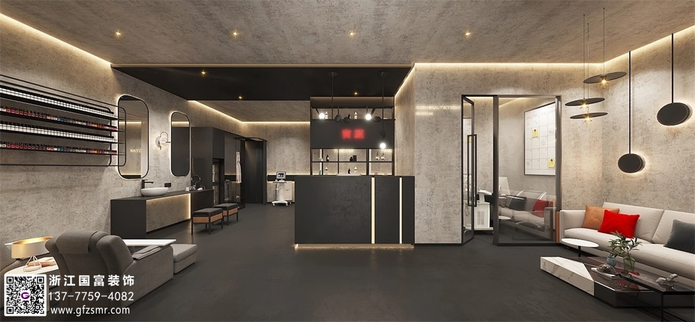 水泥洞穴風(fēng)格美容院裝修設計效果圖